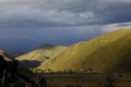 在雅江我们2:30出发,沿雅砻江而下,翻过高尔寺山口(4600多米),在下午5点多到了新都桥,原先要在新都桥过夜,师傅和大家想到康定去,在道新都桥的路上我下车,拍了新都桥,6:30在新都桥吃晚饭,正在吃时,人们一阵骚动,原来是彩虹,大家又出去拍彩虹。