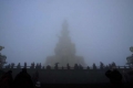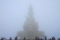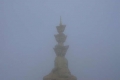 到了山顶云飞雾绕,什么也看不到,一片灰蒙蒙,巨大的佛像、金色的大殿都消失在云雾中,在这云里、雾里,我在金顶上一直等日出、等云海、等佛光;但只等到短暂的云雾消散,12点后我一人下山,在雷洞坪座汽车回到相国寺。
